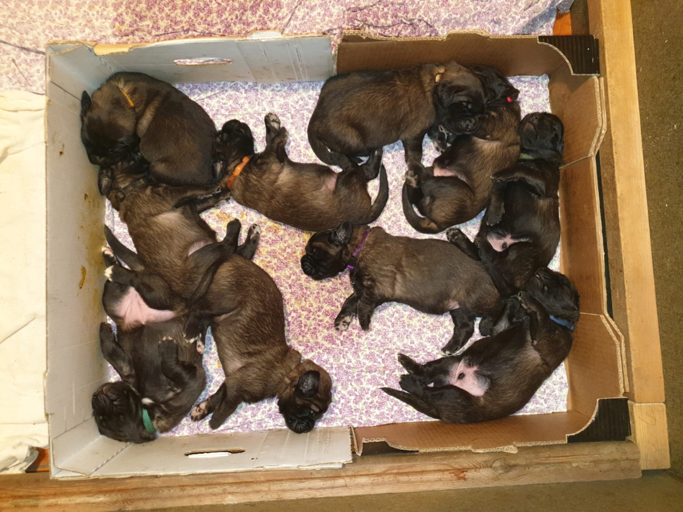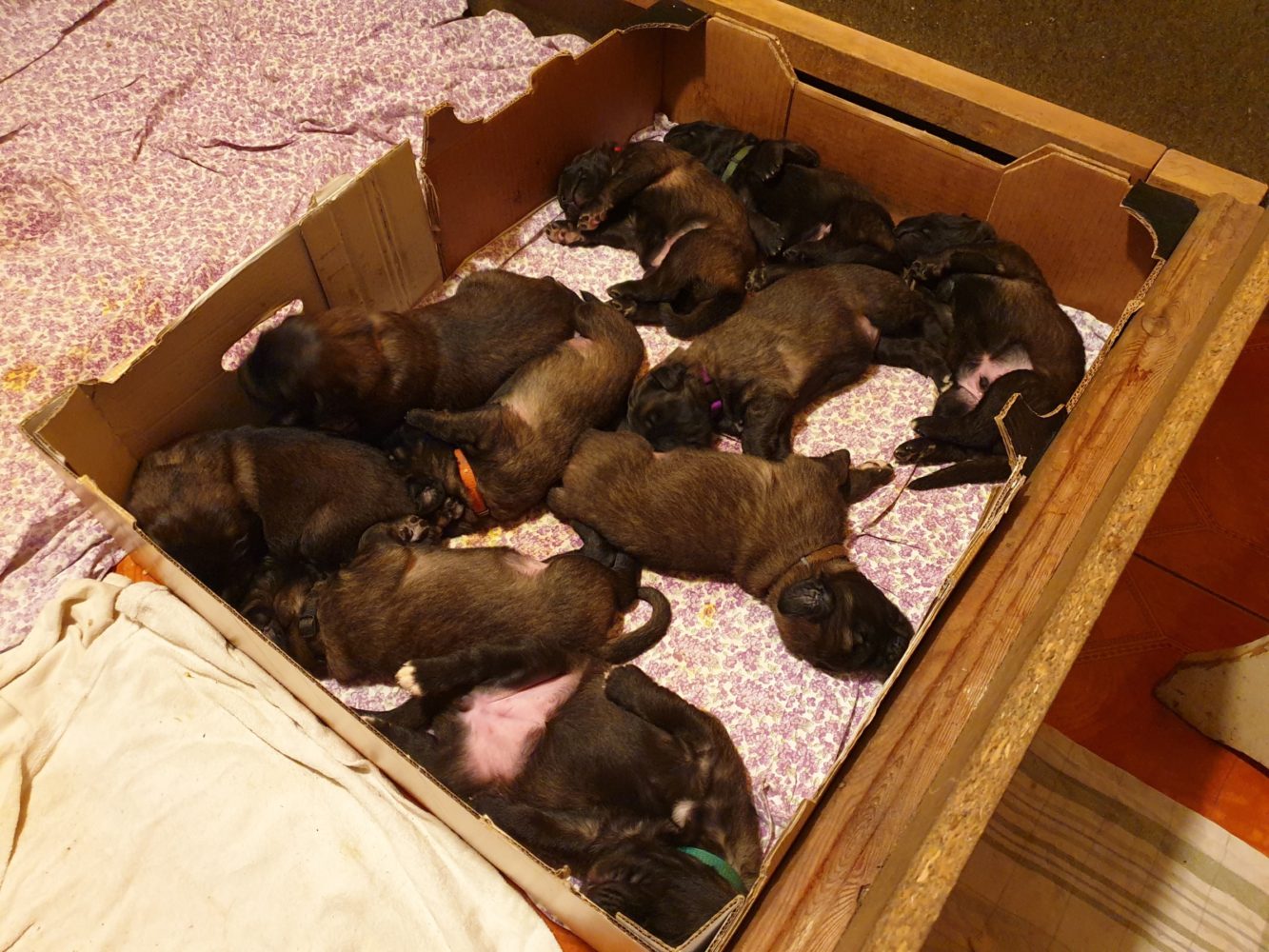 Povolují víčka a objevují se očíčka jako korálky, staví se na nožičky a velice vratkým pohybem se snaží o přesun…zkrátka je pořád co sledovat. Dnes, k nevelké radosti, proběhlo i první odčervení štěňat pastou Banminth.
