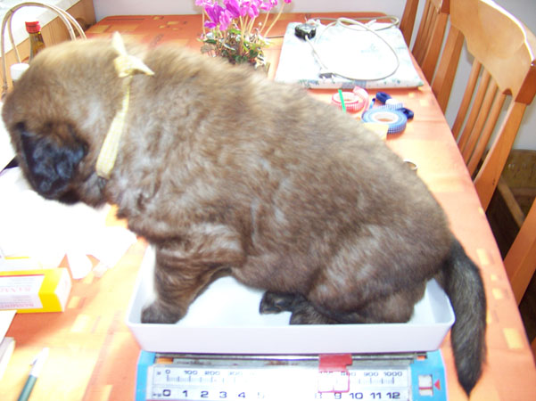 Dnes jsou štěňátkům čtyři týdny a co už všechno zbaštila a poznala . Prodlužují si i čas na hraní. Včera byla štěňata prvně na zahradě. Sluníčko nás zlobilo, nechtělo trvale svítit. Štěňátka trochu nedůvěřivě očichávala to studené pod nimi, ochutnávala trávu a pak prozkoumávala okolí. Fany je neustále sledovala a nabídla jim malou svačinku v trávě. Dnes i přes velký vítr jsme několikrát venčili také. Krátké pobyty venku jim prospěly, po návratu ihned usínala. Také proběhlo vážení štěňat, druhé odčervení a v noci jsem dala Fany volno na jedno krmení. Byla sice udivená, ale štěňata to ani nezaznamenala. Spala od 1.00 až do 6.00. Ráno se hned pustila do snídaně (maso s přílohou) a pak hned do mámy. Postupně proběhne přechod na šest jídel, z toho budou dvě mléčné svačiny, 2-3 jídla budou z vařeného masa s přílohou a zeleninou a zbytek štěněčí granule zalité masovým vývarem. Prckové už ochutnali štěněčí mléko, piškoty, str. sýr, pacholíky, tvaroh se žloutkem, str. mrkev, vařenou zeleninu, ryby, syrové i vařené maso (kuřecí, hovězí, srdce, játra, jazyk), vařené oves. vločky, těstoviny a rýži. Jasně ale vede kuřecí maso s přílohou. Tedy zatím. K pití mají v bedně stále mističku s vodou. Občas si v ní krom zahnání žízně smočí i packu nebo ocásek. Nejlepší čas je ale po jídle. To si hrají, šarvátky mezi nimi nabírají na intenzitě a ozývá se zlé vrčení. My se hned přidáváme k nim a necháme se okusovat a mazlíme se s nimi. Problém nastává, když se chtějí mazlit všechna najednou a já jsem sama doma. Mám co dělat, abych je všechna stihla hladit. Velice ráda se chovají a při tom nás olíznou, kousnou do nosu a pokud možno i do ucha. Tato zábava se jim moc líbí. V oblibě mají také hračky na kousání a tahání. V bedně mají výběr.