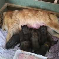 Dva týdny za námi, štěňátka krásně prospívají, stále pijí od Irisky výborné mlíčko, k tomu z lahvičky sušené psí mléko – už 2 kg zmizely (zbytky velice ráda dojede Iriska) a o víkendu již začnou zkoušet ochutnávat kašičku z masa, z tvarohu…. začnou si postupně zvykat na pevnou stravu.